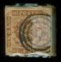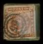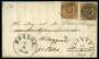 1854. 4 RBS nøddebrun pl. IV-36 og 4 RBS gulbrun pl. IV-2 på brev med nr. stp. 27 og 72, kun enkelte blandningfrankering kendes. Udstillingsobjekt.