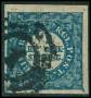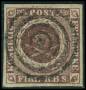 1851. FIRE R.B.S. Ferslew. Smukt annulleret med stumt stempel, men udglattet lodret fold i venstre side.