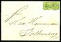 1858-62. 8 sk. grøn i parstykke på pænt brev. AFA 5.500,-
