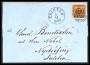 1854. 4 sk. brun i vandret 3-stribe på brev til Heide med sidestempel Kiel Bahnhof 26.6.1856.
