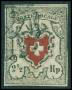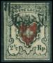 1094. Stående Helvetia, 40 Centimes, grå. TRYKT PÅ BEGGE SIDER. Forside er smukt annulleret LUZERN 7.XII.09 og bagsiden med komplet tryk af mærkebilledet. Fantastisk raritet. UDSTILLINGSOBJEKT.