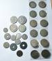 Diverse udenlandske mønter fra bl.a. Tyskland, England, Kina, Polen, Norge, USA, Sverige, Beligen. En del sølv i blandt i alt over 2 kg.